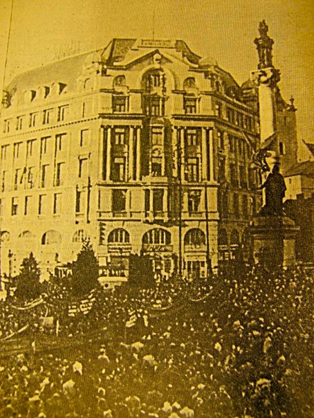 1. „Spontaniczny” mityng we Lwowie pod pomnikiem Adama Mickiewicza w związku z „wyzwoleniem” miasta przez Armię Czerwoną, VIII.1944 r.; żródło: „Wil’na Ukrajina”