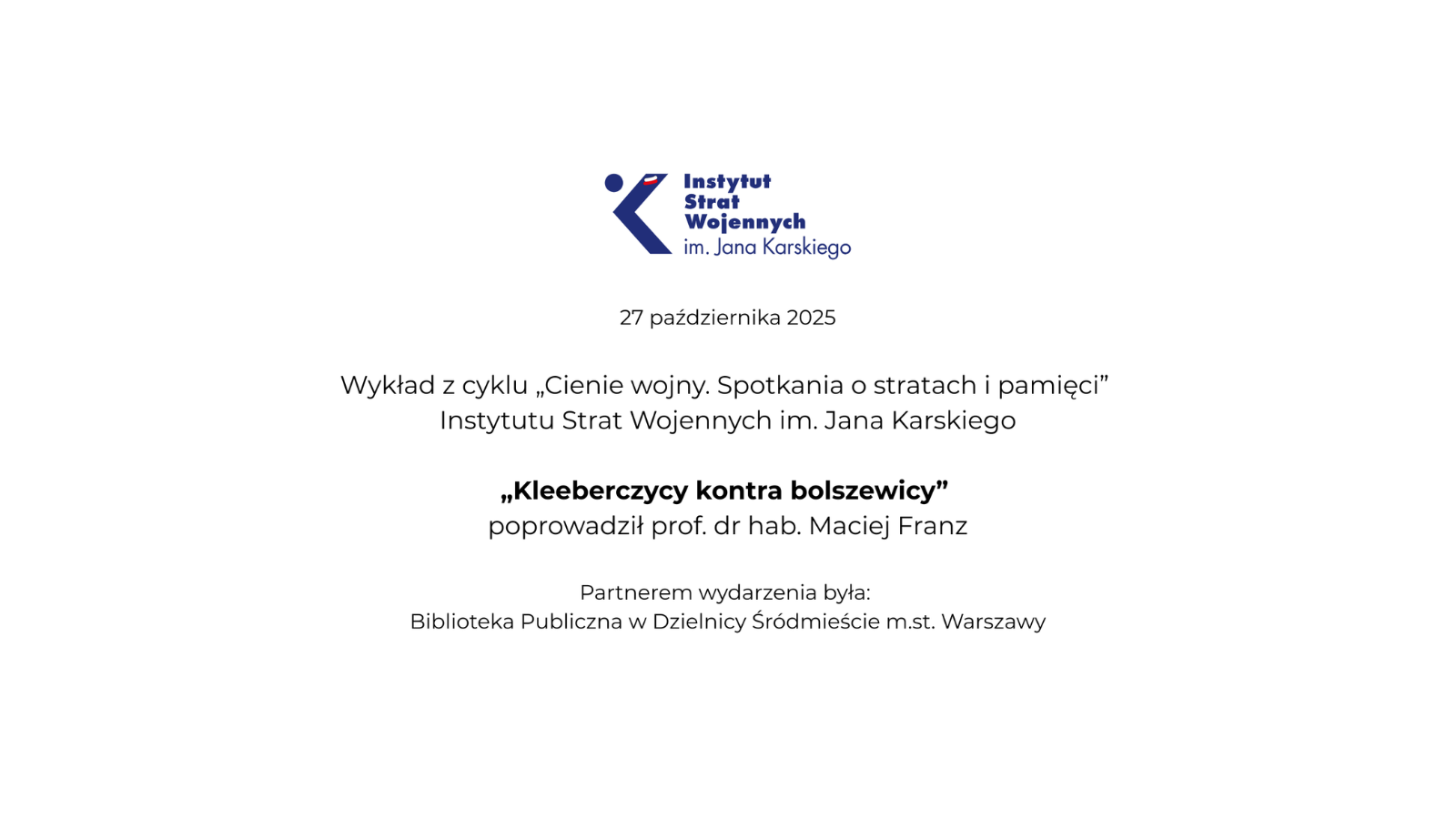 W trakcie wykładu zorganizowanego przez Instytut Strat Wojennych im. Jana Karskiego i Bibliotekę w Dzielnicy Śródmieście m.st. Warszawy prof. Maciej Franz przybliżył szlak Dywizji „Kobryń”, ostatniej jednostki Wojska Polskiego sformowanej w trakcie kampanii wrześniowej, która stała się rdzeniem dowodzonej przez gen. Franciszka Kleeberga Samodzielnej Grupy Operacyjnej „Polesie”. To właśnie podkomendni wspomnianego dowódcy zmuszeni byli zmierzyć się nie tylko z Niemcami (m.in. w bitwie pod Kockiem), ale też Armią Czerwoną, która według ustaleń tajnego protokołu do paktu Ribbentrop-Mołotow 17 września 1939 r. rozpoczęła zbrojną agresję przeciwko Polsce.